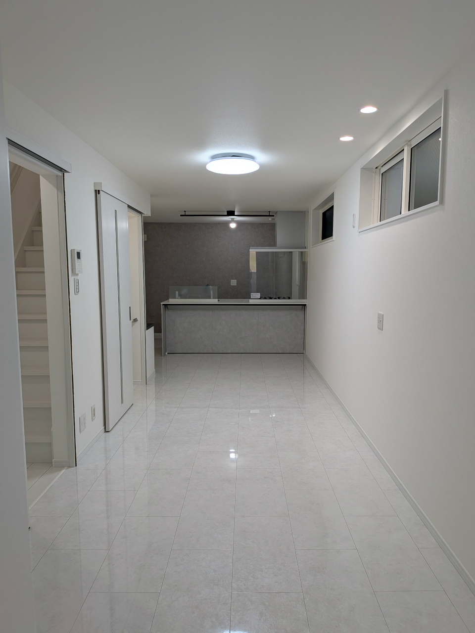 玄関を入ると大理石調の床と壁が綺麗なホワイト系の内装(*‘∀‘)